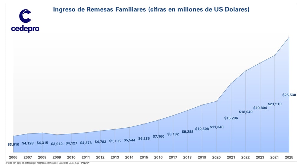 · Dependencia económica: Existe el riesgo de que la economía guatemalteca dependa excesivamente de las remesas, lo que puede limitar el desarrollo de sectores productivos internos.